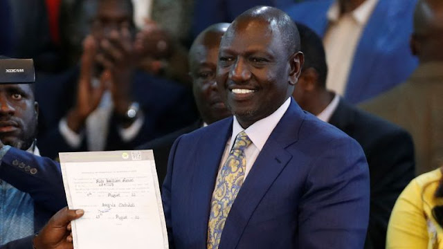 Kwa mujibu wa matokeo yaliyotangazwa na mwenyekiti wa Tume Huru ya Uchaguzi na Mipaka (IEBC) Wafula Chebukati, Ruto alipata kura 7,176,141 ikiwa ni asilimia 50.49 ya kura zote zilizojumlishwa za kutangazwa mshindi. Waziri Mkuu huyo wa zamani aliibuka wa pili kwa kura 6,942,930 akiwakilisha 48% ya kura zote zilizojumlishwa.