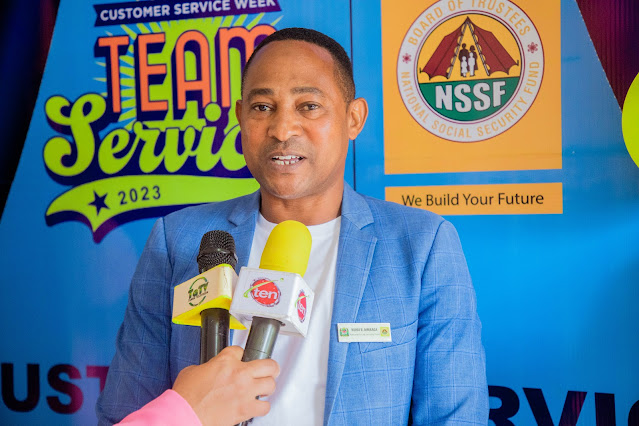 “Leo tupo kwenye kilele cha Kufunga siku ya huduma kwa wateja tunawashukuru bodi ya wadhamani ya NSSF Mkurugenzi mkuu na watumishi katika kuadhimisha wiki ya wateja lakini pia tunamshukukuru Rais Dkt Samia Suluhu kwa jinsi anavyopambania nchi katika kutekeleza miradi mikubwa ya kimkakati nchini na hivyo kuongeza chachu kwao kwa kuongeza waajiriwa wapya